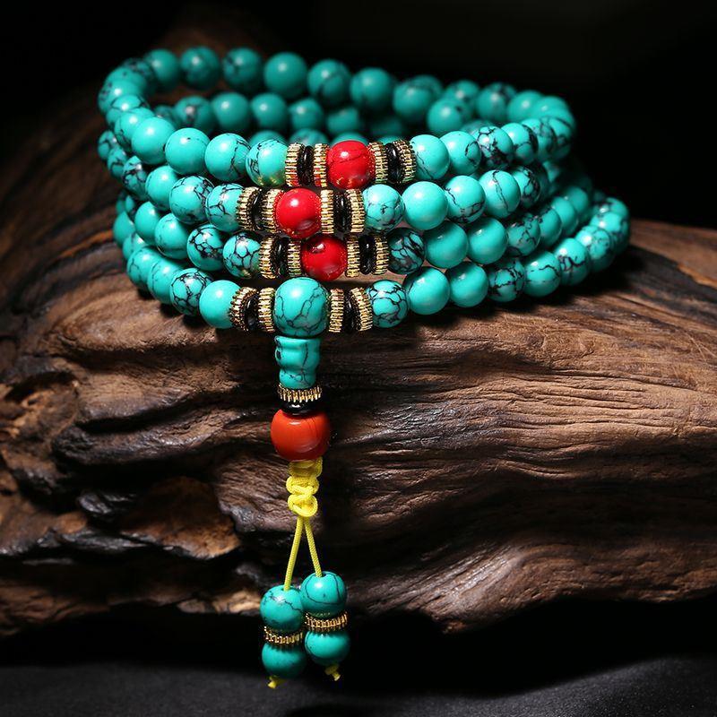 The Tibetan Turquoise Healing Mala Bracelet is a beautiful and authentic piece of jewelry made with natural turquoise beads and a Buddha charm. It is believed to have healing properties and is used for meditation and prayer. This bracelet is designed to promote peace, balance, and spiritual growth.