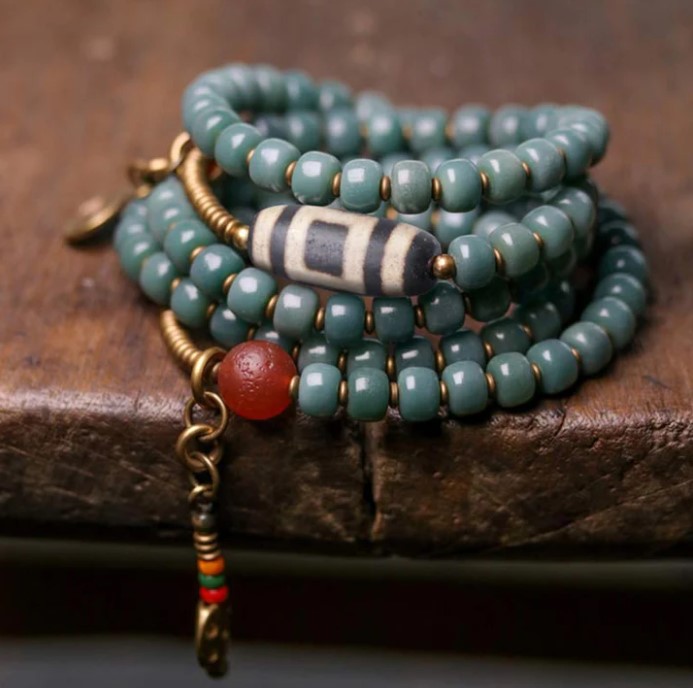 - Material: Bodhi Seed, Dzi Bead (hand painted), Copper